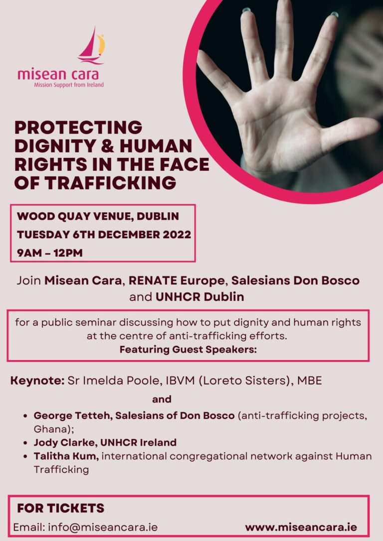 Protecting Dignity and Human Rights in the face of Human Trafficking Misean Cara seminar The seminar is focused on international dynamics and concerns, given Misean Cara’s international development mandate, but there will of course be overlap interests for Ireland and the European Union, given the universality of human dignity and rights, and international issues that need tackling at different levels.…