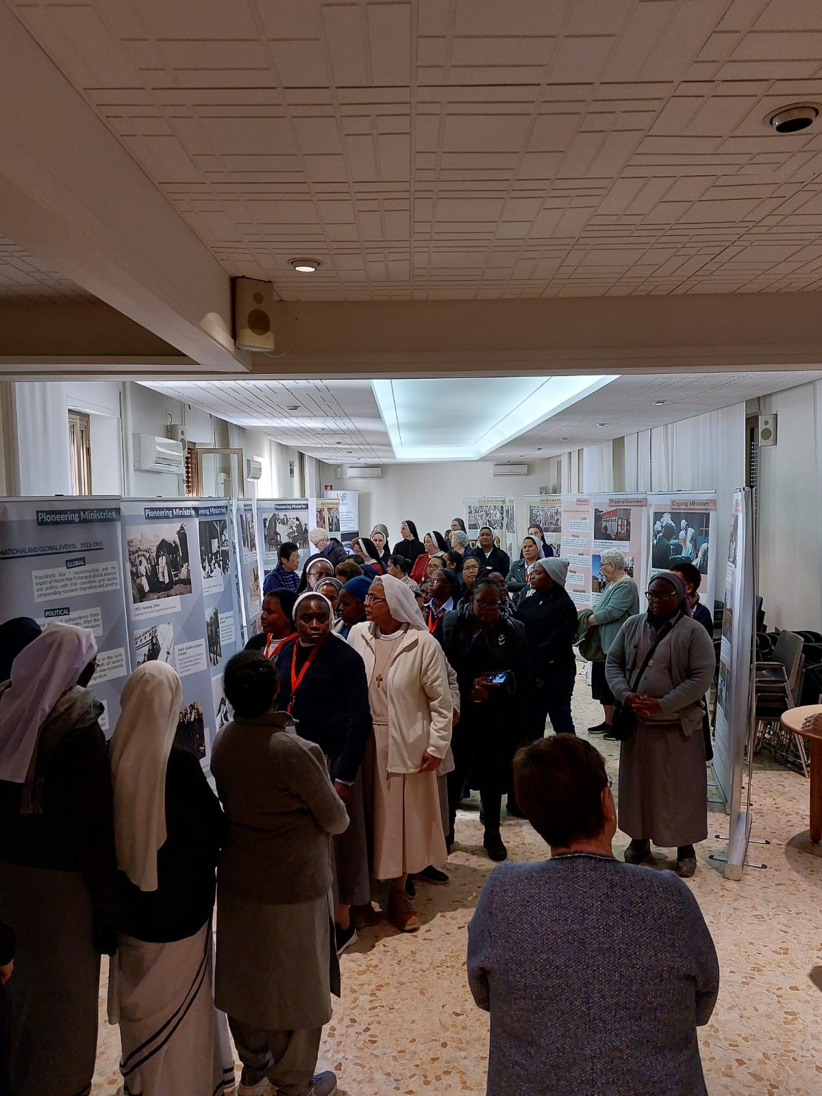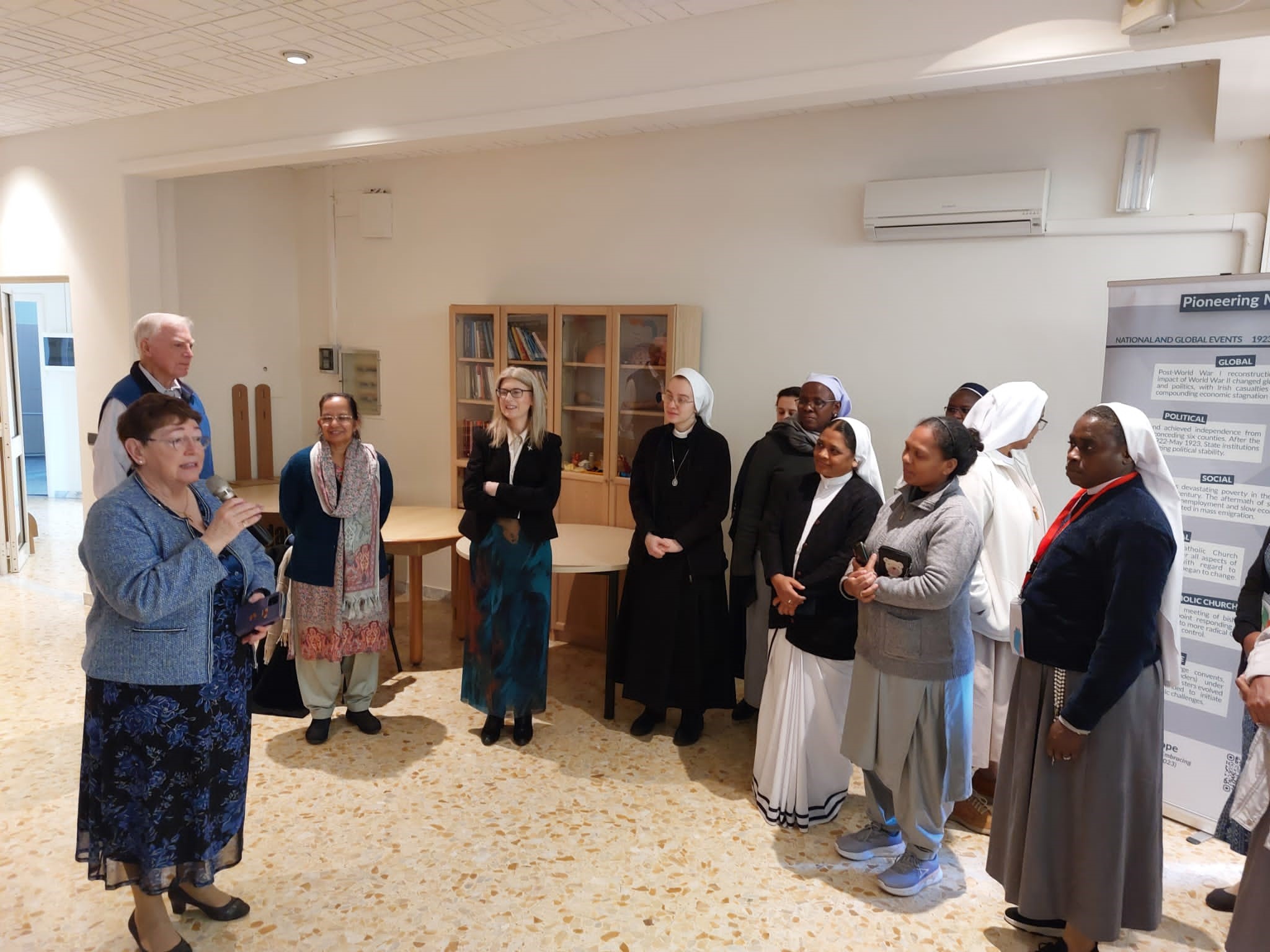 LAUNCH: October 2nd 2023 in Iveagh House, Department of Foreign Affairs hosted by Minister Sean Fleming, Minister of State at the Department of Foreign Affairs with special responsibility for International Development and Diaspora. Caoimhe de Barra, CEO of Trocaire launched the exhibition with an excellent address, which reflected her work with Irish Sisters overseas and in Ireland. Guests included among others AMRI Leaders, Donors and Marjolie Nunes-Smith, the graphic designer.